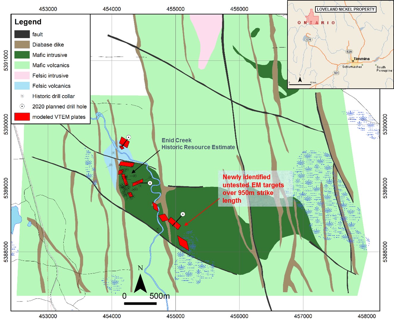 Vancouver, British Columbia--(Newsfile Corp. - February 6, 2020) - North American Nickel Inc. (TSXV: NAN) (OTCBB: WSCRF) (CUSIP: 65704T 108) (the "Company" or "NAN") is pleased to announce details of its 2020 exploration and drill program on the Loveland Nickel property ("Loveland") located 30km northwest of Timmins, Ontario. The property is 23.6 km2 in size and has year-round access.