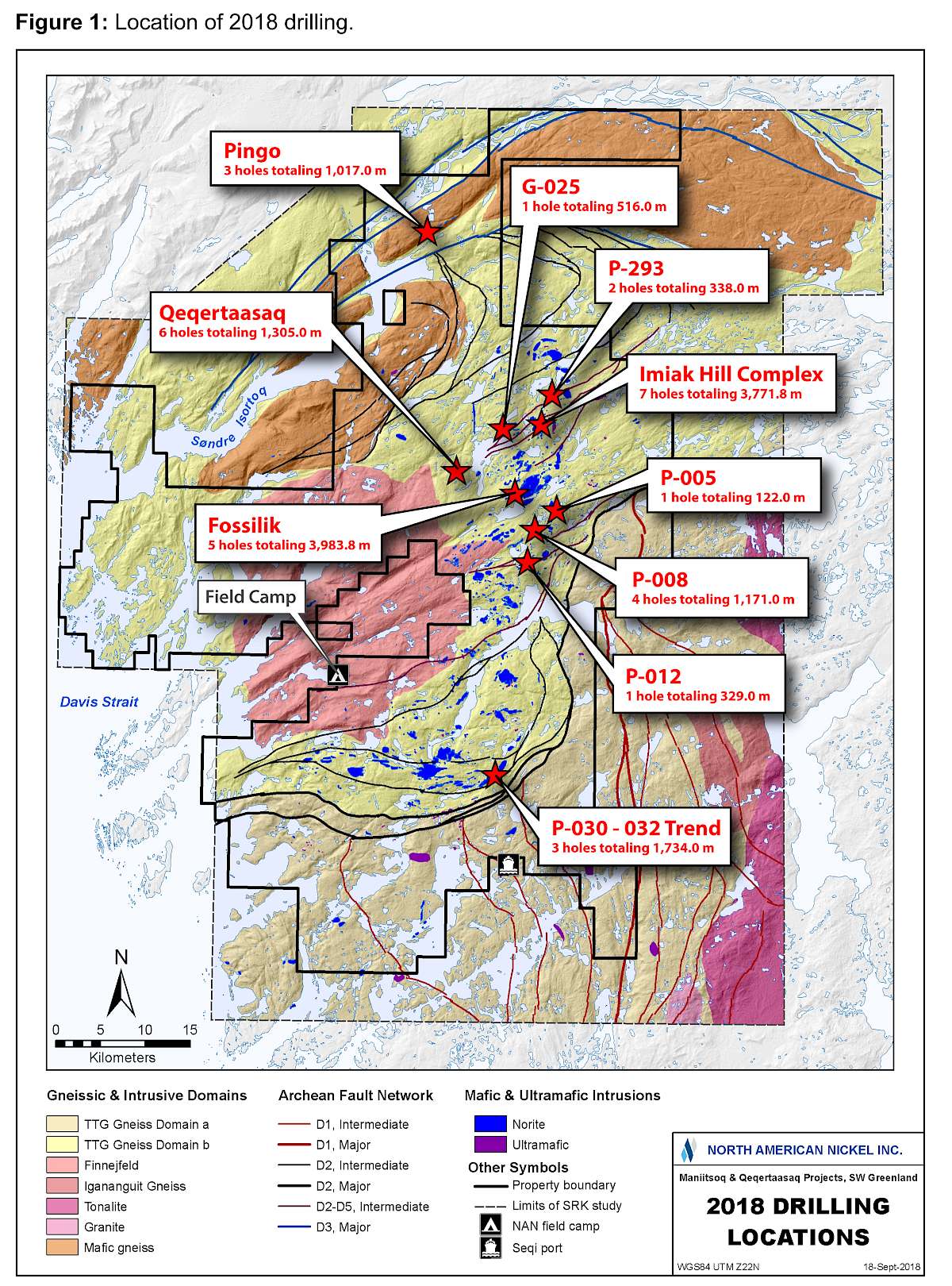 Vancouver, British Columbia--(Newsfile Corp. - September 19, 2018) - North American Nickel Inc. (TSXV: NAN) (OTCQB: WSCRF) (CUSIP: 65704T108) (the "Company") has completed its 2018 exploration and drilling program at the Company's 100% owned Maniitsoq nickel-copper-cobalt-PGM project in Southwest Greenland.