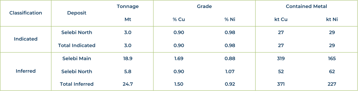 • Inferred MRE: 18.89 Mt at 3.51% CuEq or 1.70% NiEq.