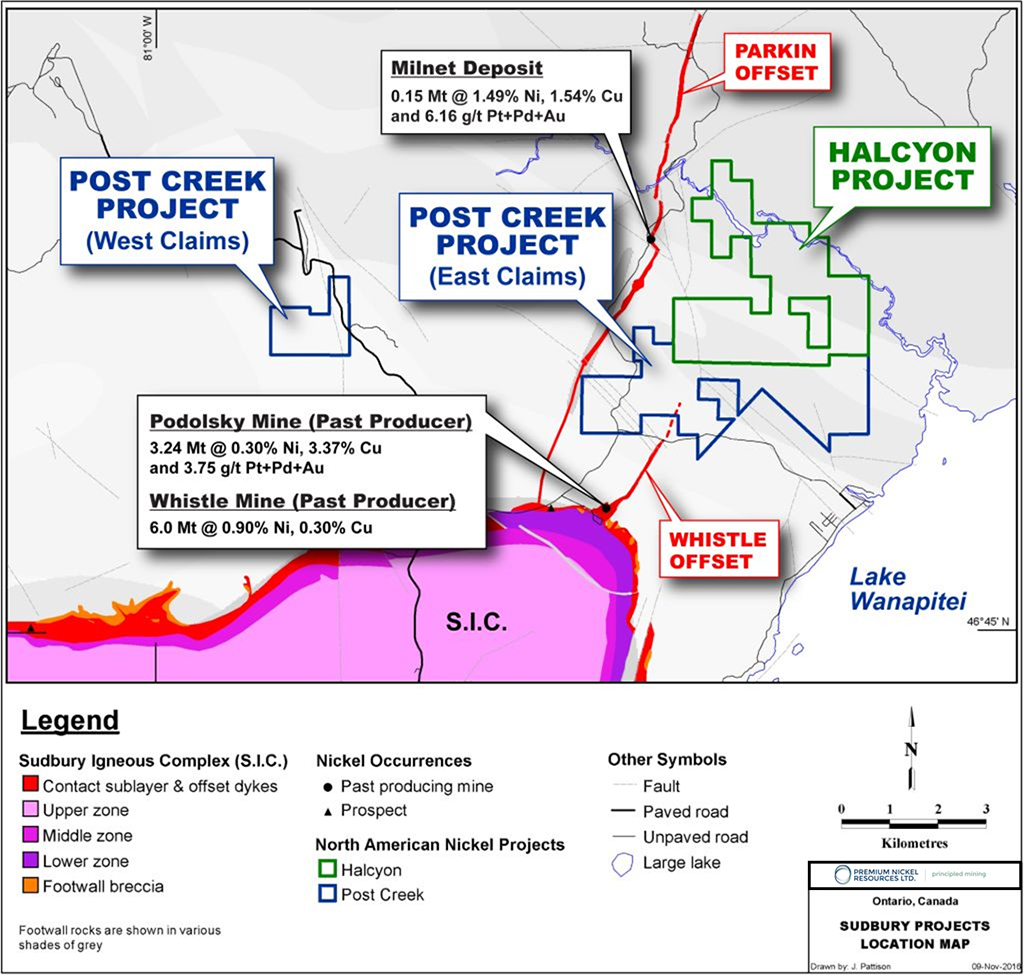 Work completed to date by Premium Resources Ltd (“PREM” or “The Company” Formerly North American Nickel) has identified a new Quartz Diorite dyke as well as a significant Sudbury Breccia belt on the Post Creek Property. The presence of these lithologies proximal to the eroded base of the Sudbury Igneous Complex (SIC) indicates the significant exploration potential for the property to host both Offset and Footwall style mineralization.